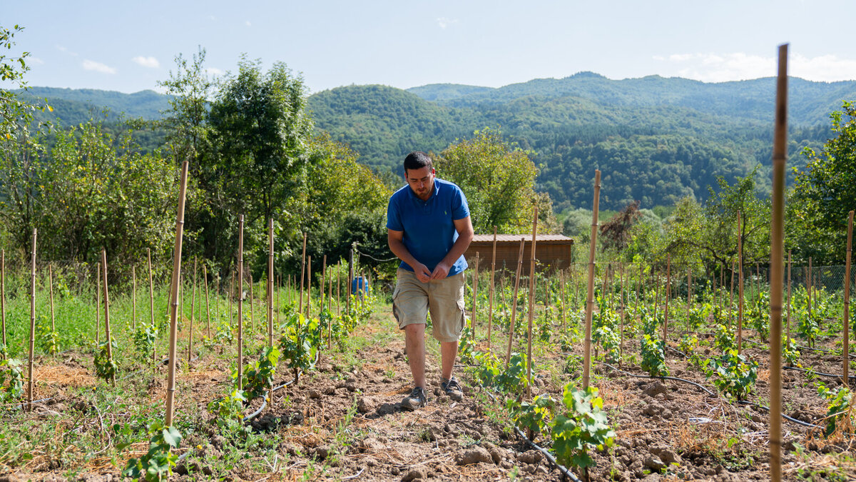Levan and Eka are rare exceptions of people who prefer living in the countryside to the city. The couple left Tbilisi, the capital city of Georgia, five years ago with the newborn Yona and settled in Levan's paternal house in the village of Sori of Racha. Little Isaia was born here. After overcoming the initial difficulties, the couple planted the first vines and laid the foundation for the "Ori Gvari" (two surnames) winery. Eka and Levan have a lot of plans, most of which are related to living in Racha.