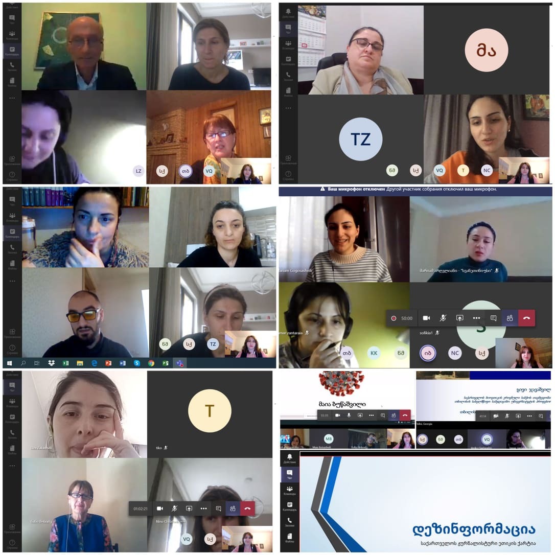 Caritas Czech Republic has been engaged in number of measures against the spread of Covid-19 infection. One of the important activities among them is delivery of online series of lectures “Physical, psychological and informational security in times of pandemic for mass media”, together with the Georgian Charter of Journalistic Ethics targeting mass media representatives from Samegrelo-Upper Svaneti. The participants, together with invited experts went through a number of important issues: proper reporting, confirmation of the facts, disclosure of personal information, sensational and panic headlines, medical ethics and healthcare legislation. Above mentioned issues was so interesting for participants that additional sessions are planned for the next week.